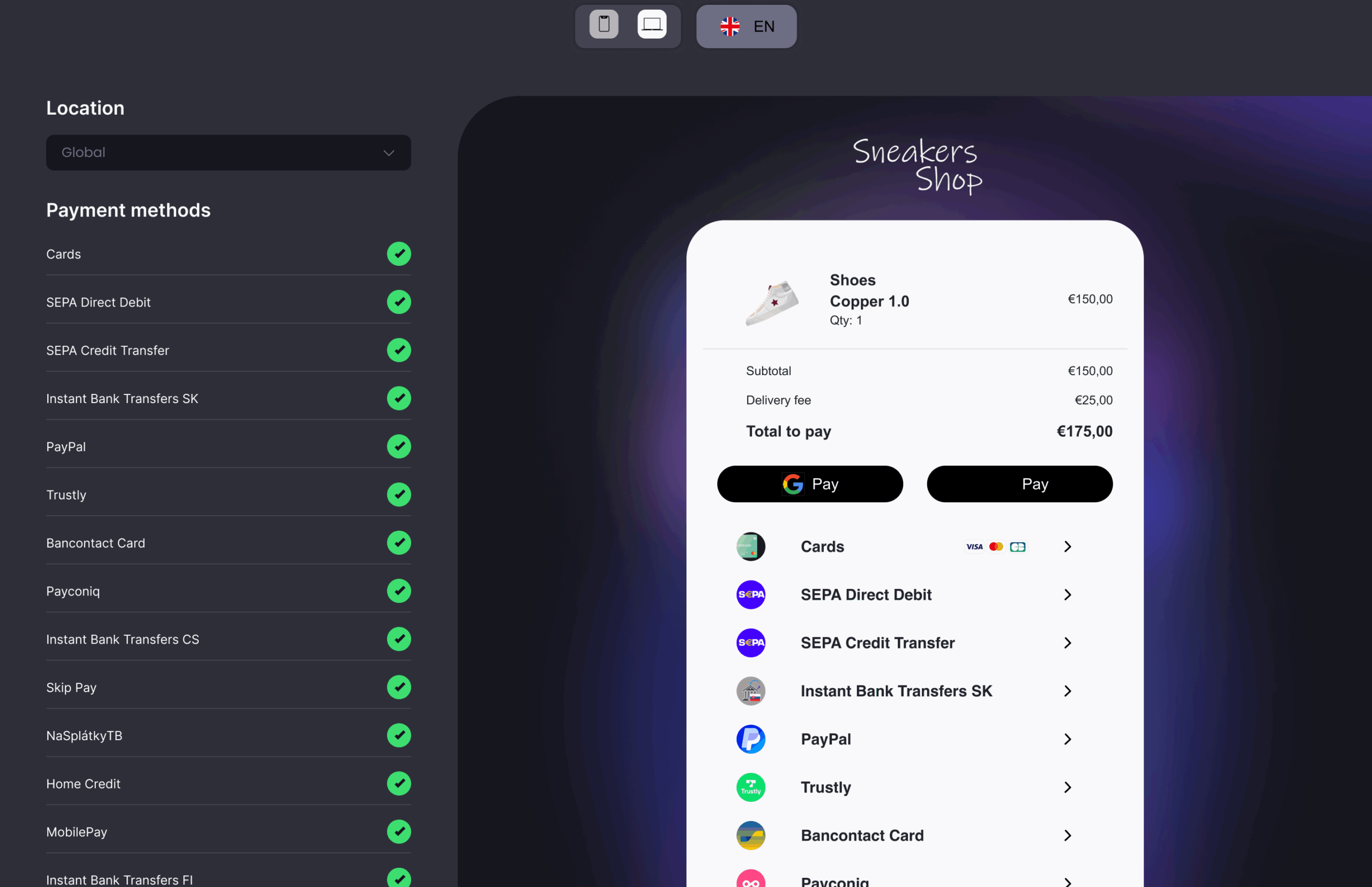 Podpora 170 měn a placení ve 14 měnách.